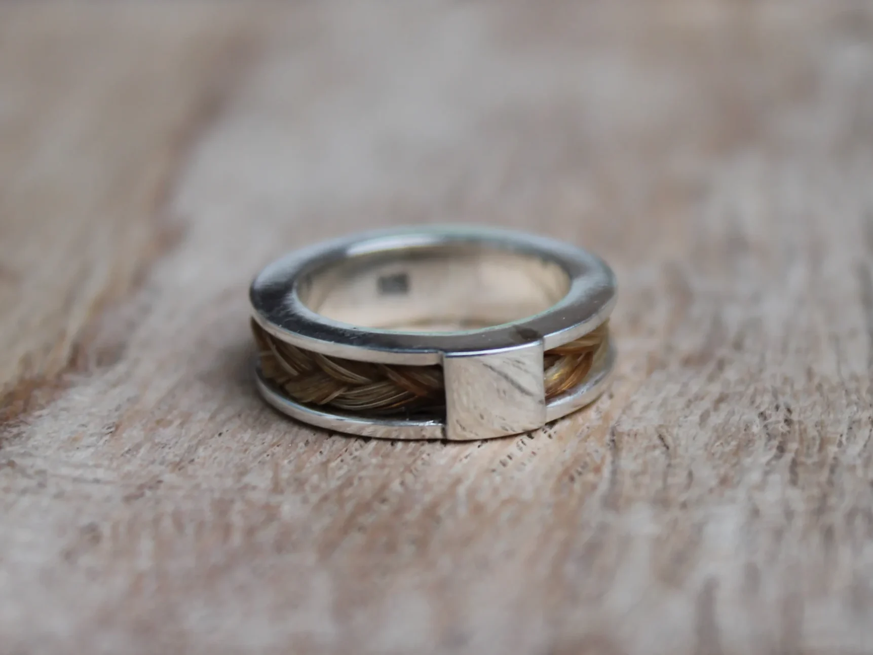 In liebevoller Handarbeit gefertigter, hochwertiger 925 Silber Ring mit Pferdehaar.